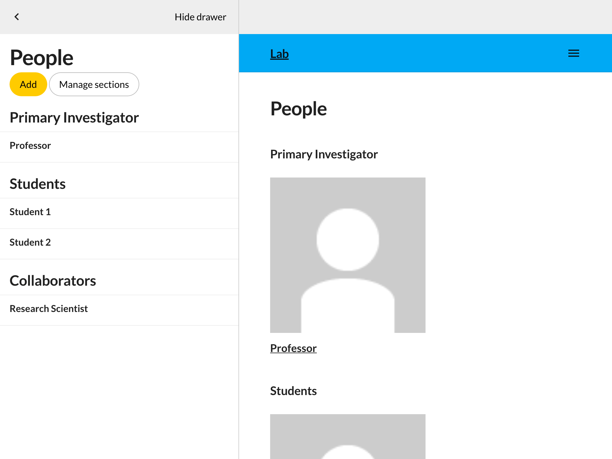 First, your website now has a separate page that lists people. And each person gets their own page, so you can add more information about them.