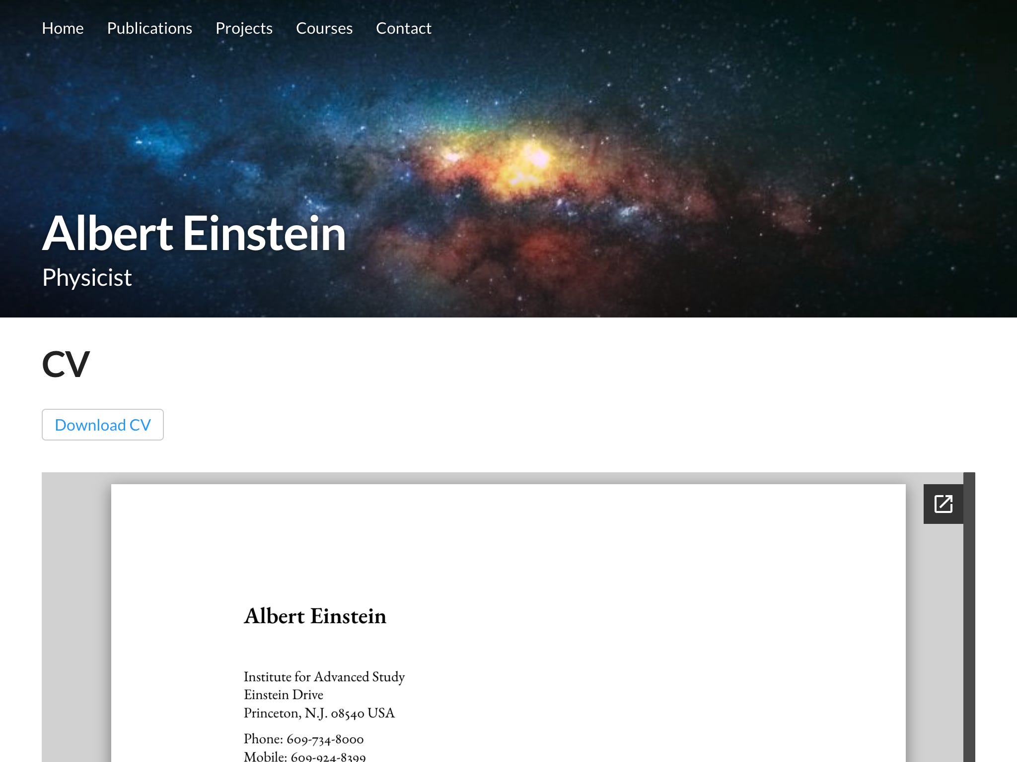 Your Owlstown website has a dedicated page for your CV. Your CV page shows a preview of your CV and a download button. Example